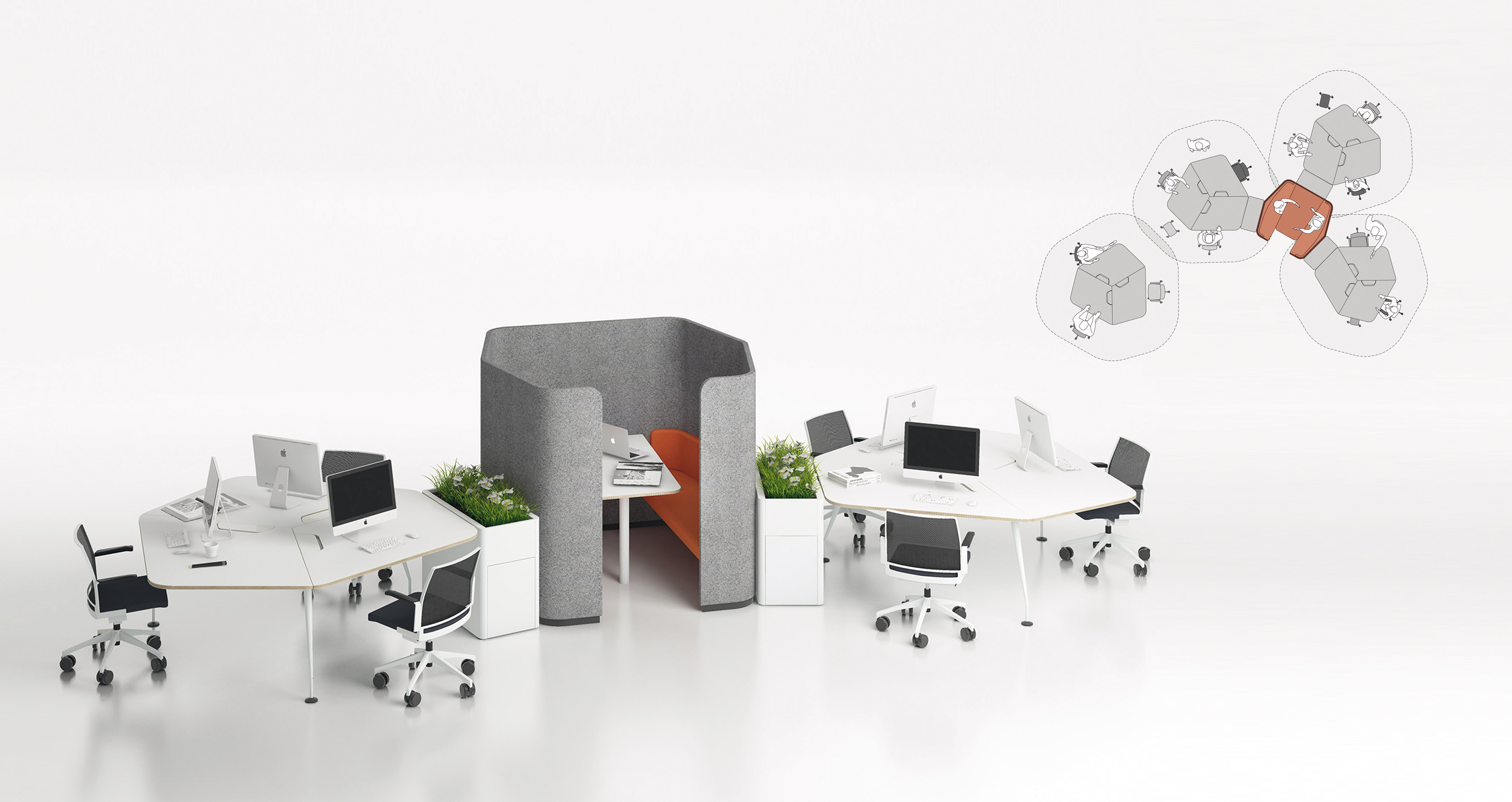 Disponer de mobiliario al que se le pueden incorporar con posterioridad a su instalación accesorios como pantallas frontales y laterales, biombos y paneles de suelo delimitando zonas de incertidumbre e incluso tener mobiliario reconfigurable con facilidad para generar distancia (estoy pensando en nuestras soluciones tipo bench que, fácilmente pueden separarse en islas de dos puestos), son aspectos muy positivos.
